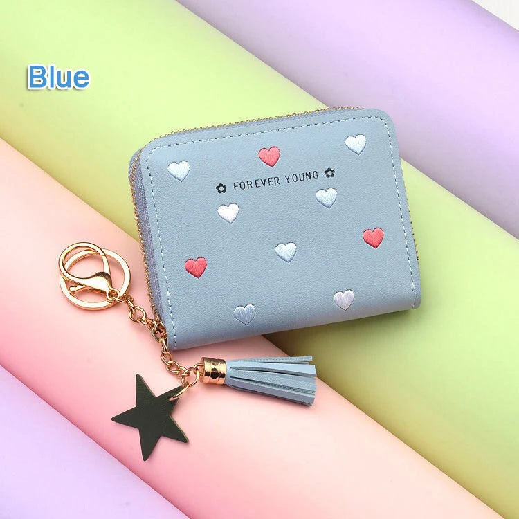 Coin Purse Tassels Zipper Flap Wallet Women Purses Heart Moneybags