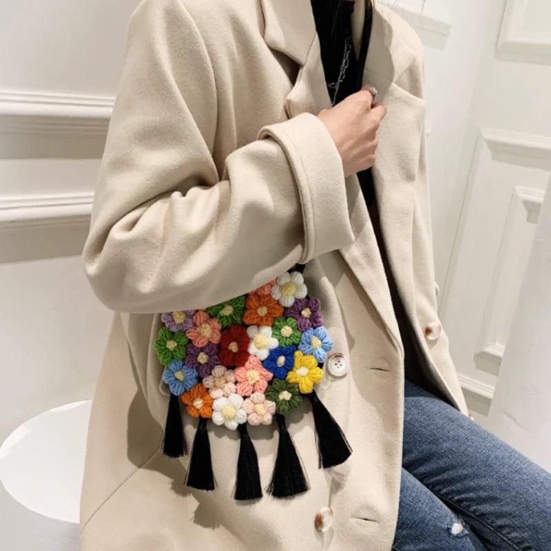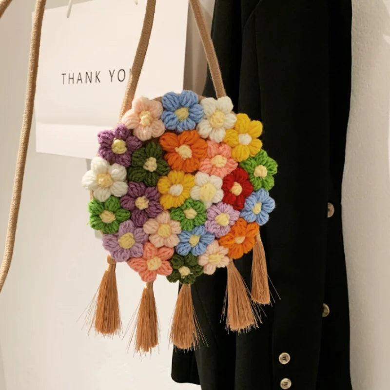 Colorful Flower Woven Bag Beach Vacation Shoulder Messenger Bag