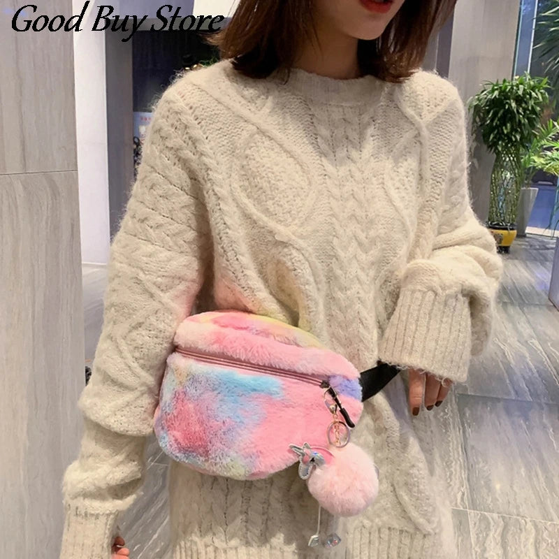 Colorful Fur Waist Bag Shoulder Belt Bags Women Phone Pouch Student Fanny Packs