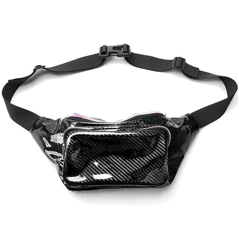 Stay stylish and organized with this PVC fanny pack that can be worn as a cross-body or shoulder bag. Perfect for carrying your essentials on-the-go.