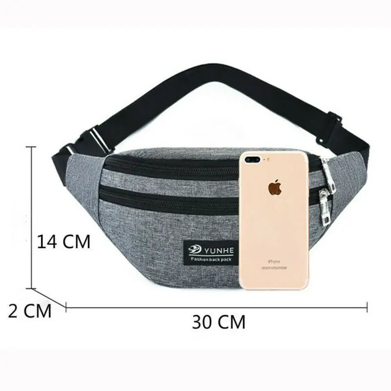 This waist bag is perfect for travel or everyday use. Made of durable Oxford cloth, it features a zipper pouch to keep your phone secure and accessible.