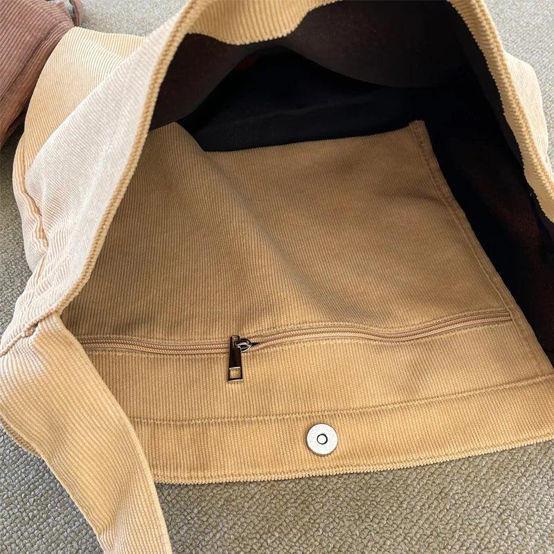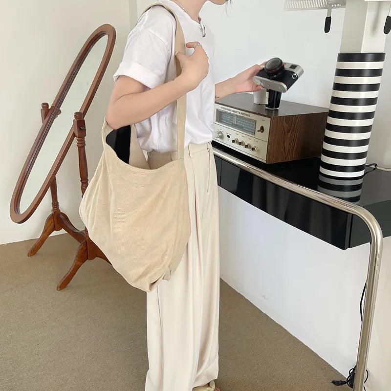 This stylish hobo tote bag is made of high-quality corduroy, perfect for shopping, work, or casual use. It features a comfortable crossbody strap and ample storage space.