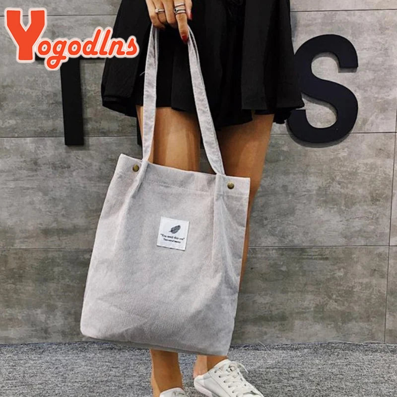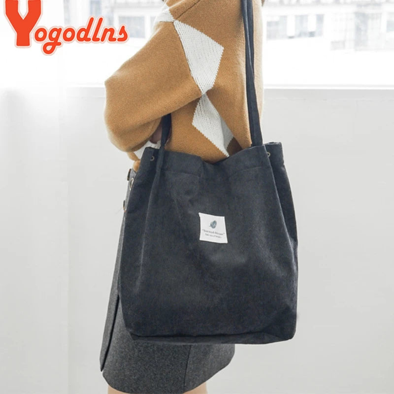 This shoulder bag for women is made of corduroy, featuring a high capacity for all your essentials. It's perfect for casual outings and can be easily folded for storage. A stylish and eco-friendly choice for your shopping needs.