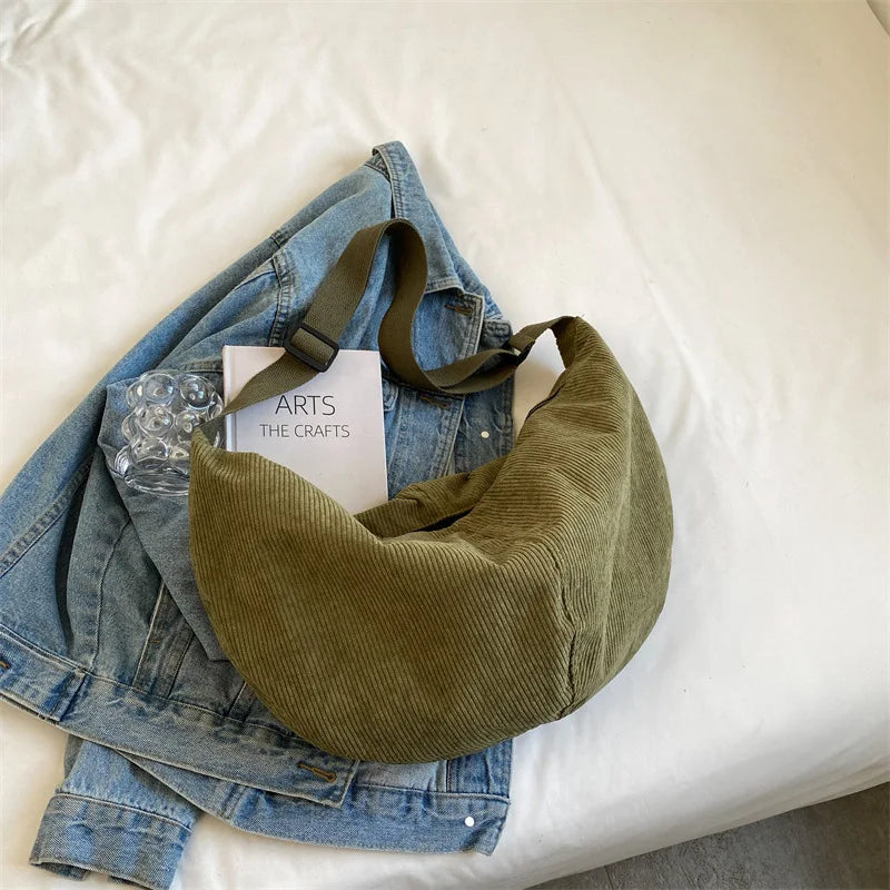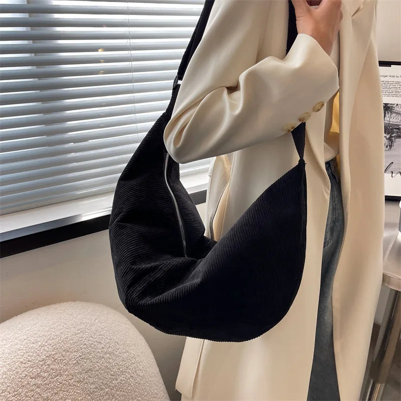 This stylish shoulder bag is made of high-quality corduroy material, designed for women who value both fashion and functionality.