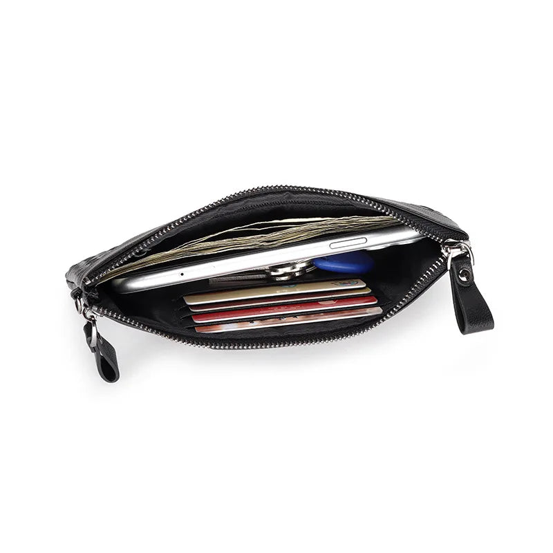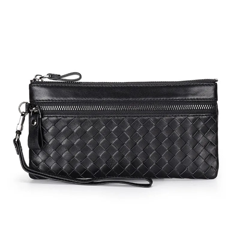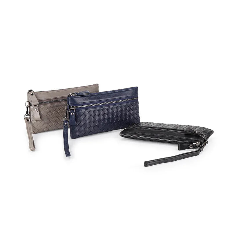 This stylish RFID wallet is crafted from high-quality cow leather and features a woven sheepskin design. It can hold your mobile phone and other essentials, making it the perfect accessory for women on the go.