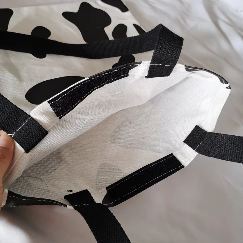 Cow Pattern Shopping Bag Harajuku Sweet Girls Casual Totes Large Shoulder