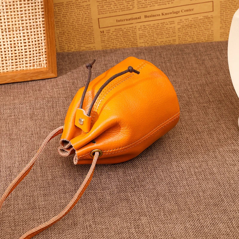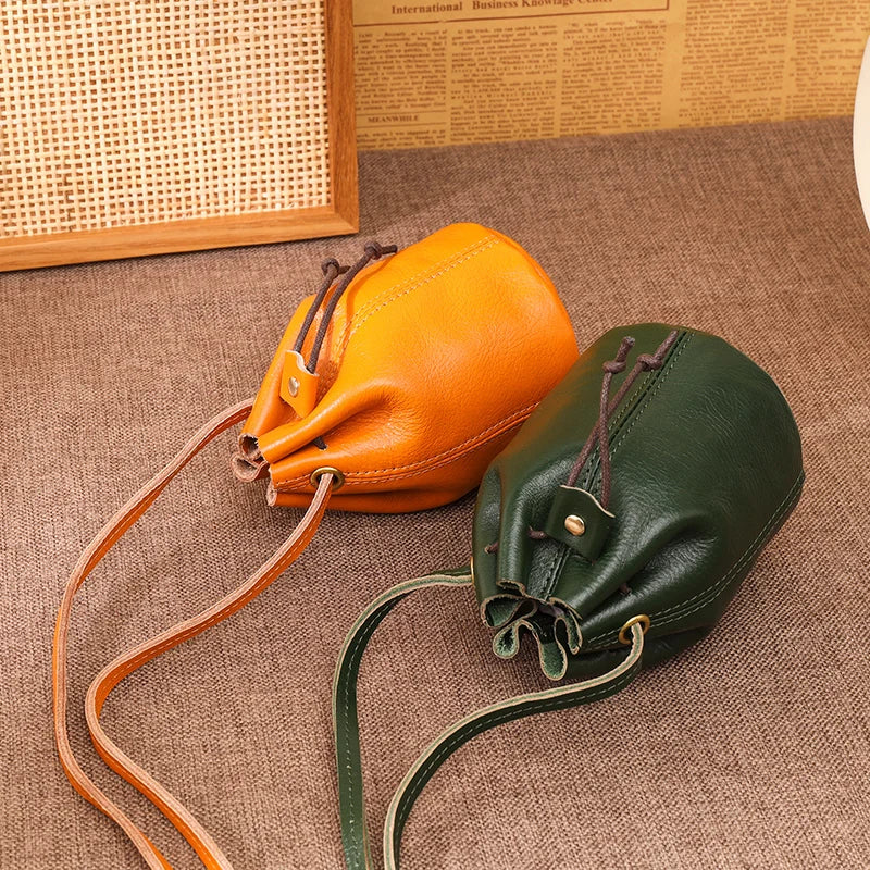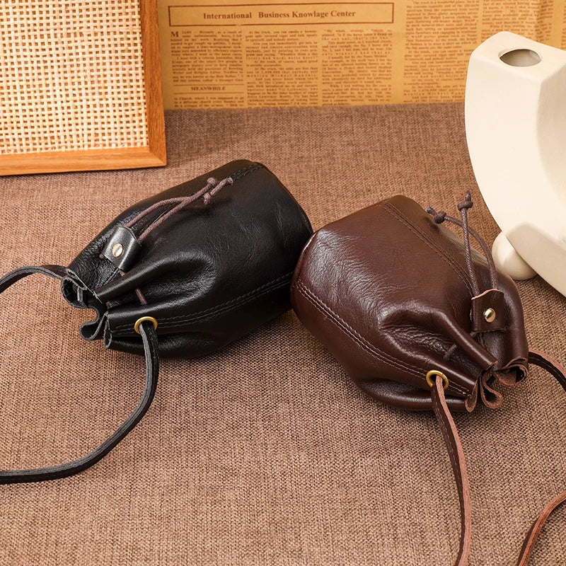 This small crossbody bag is made of cowhide leather, perfect for carrying your phone and other essentials. It features a soft texture and a mini bucket design.