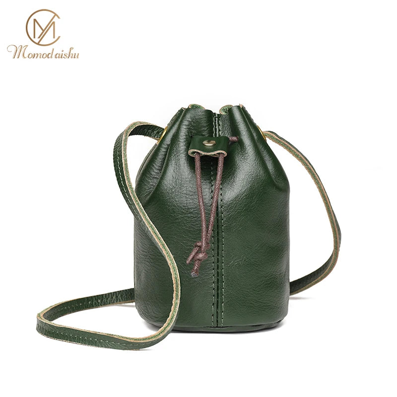 Cowhide Small Crossbody Bags Soft Leather Mini Bucket Shoulder Messenger