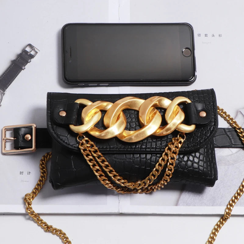 Crocodile Pattern Fanny Pack Chain Belt Bag Crossbody Bags