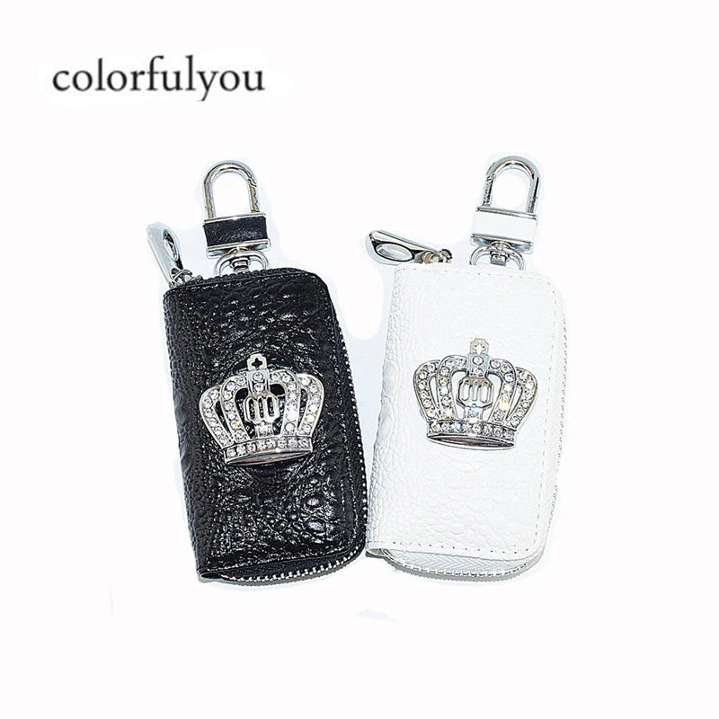 Diamond crown Men women Key Wallet perfect for holding keys. Features crocodile pattern design and spacious interior.