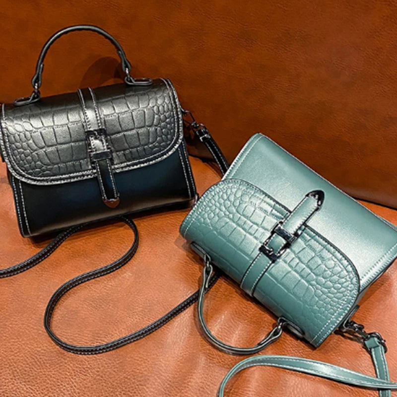 Crocodile Pattern Shoulder Bag PU Leather Flap Square Bag Crossbody Bag