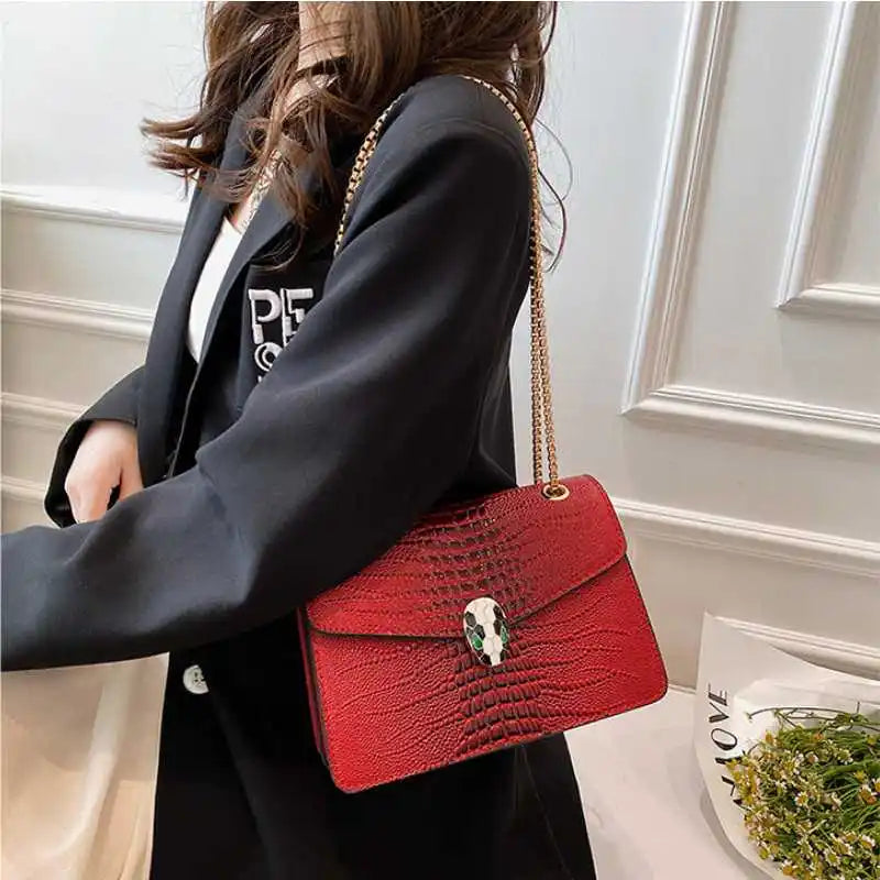 This women's underarm bag features a crocodile pattern design and a stylish chain shoulder strap. Perfect for casual outings, this small square bag adds a touch of street style to any look.