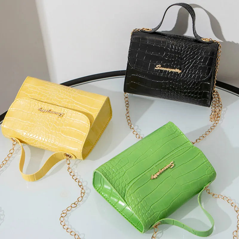Crocodile Pattern Women Bag Shoulder Bag Wave Chain Portable Small Square Bag