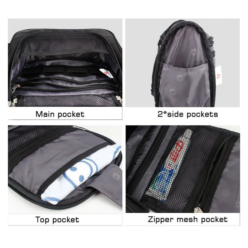 Description:Keep your toiletries organized in this multifunctional travel bag. Perfect for storing makeup, cosmetics, and shower essentials during your travels.Features: Swiss design for durability and style Multiple compartments for efficient organization Easy to hang in bathrooms or showers Great for both men and women Compact size for travel convenience This...