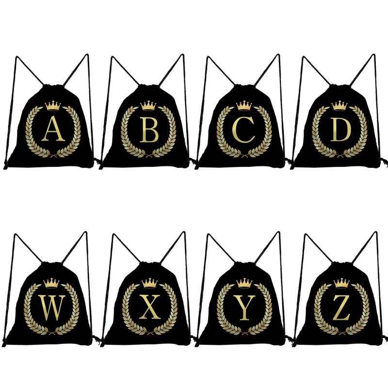 Drawstring Pocket Shoes Bags Name Golden Letters Print Women's Backpacks