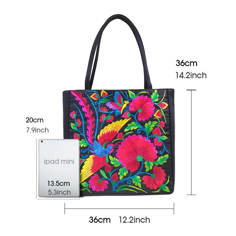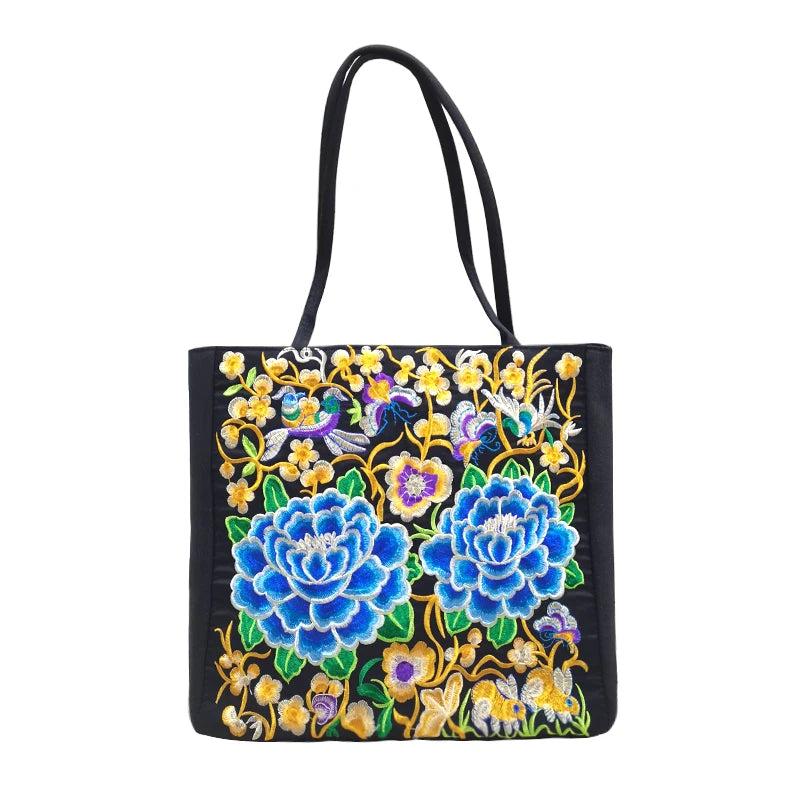 This high-capacity shoulder bag features beautiful embroidery and a Chinese ethnic style design, perfect for shopping or everyday use.
