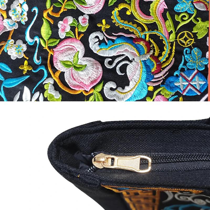 - Embroidered canvas bag with Chinese ethnic flair