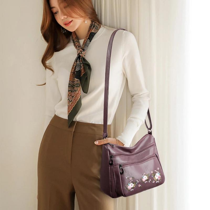 - Stylish crossbody bag with embroidery flower pattern