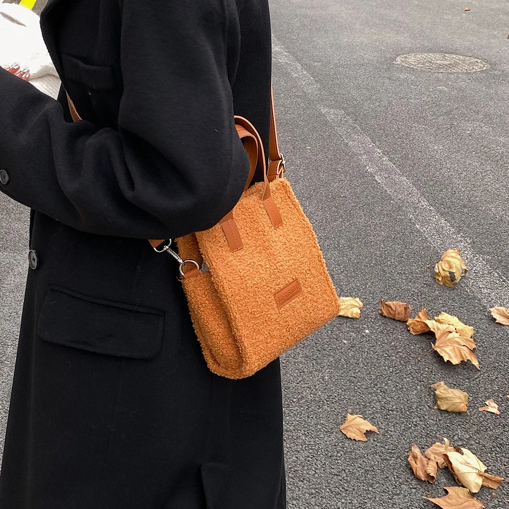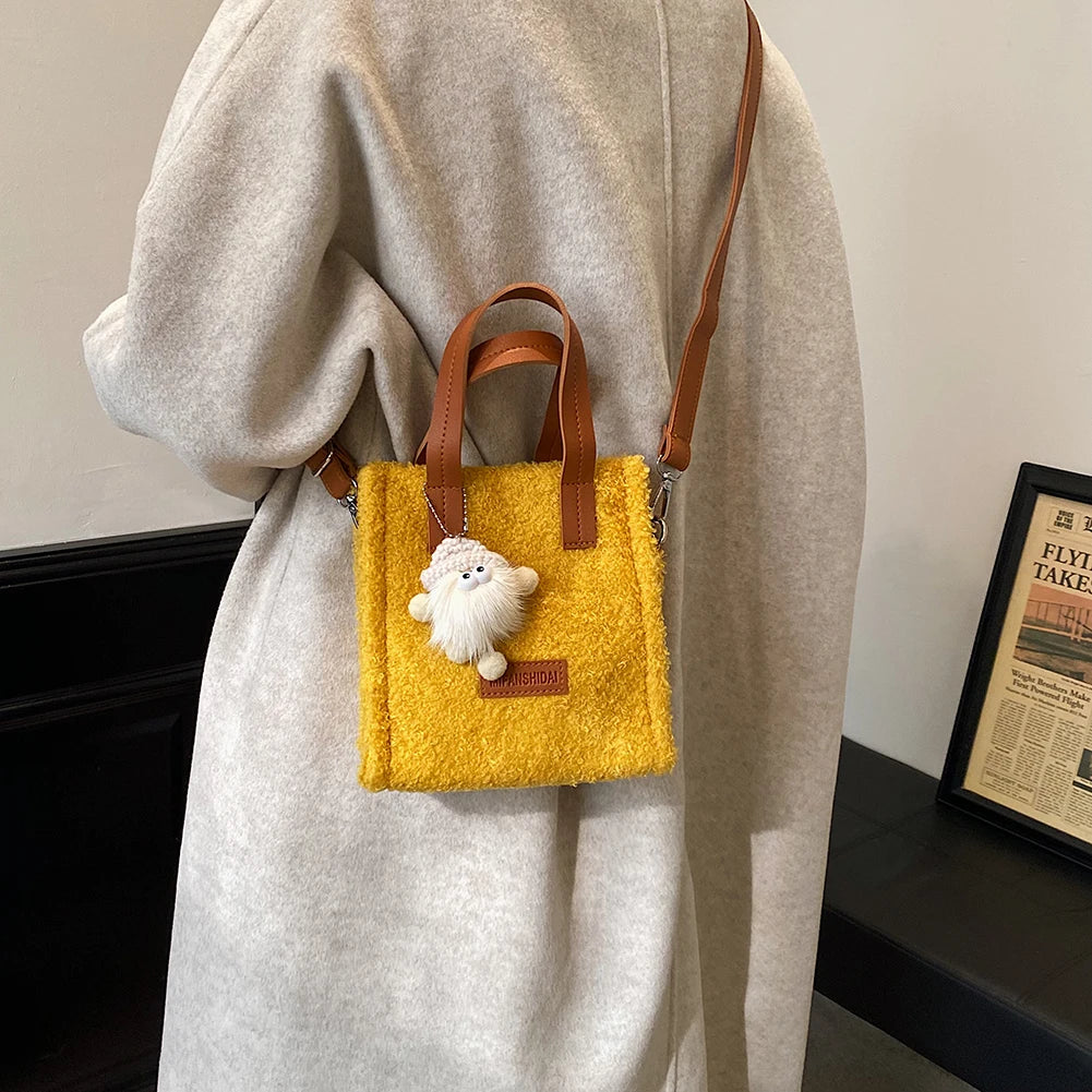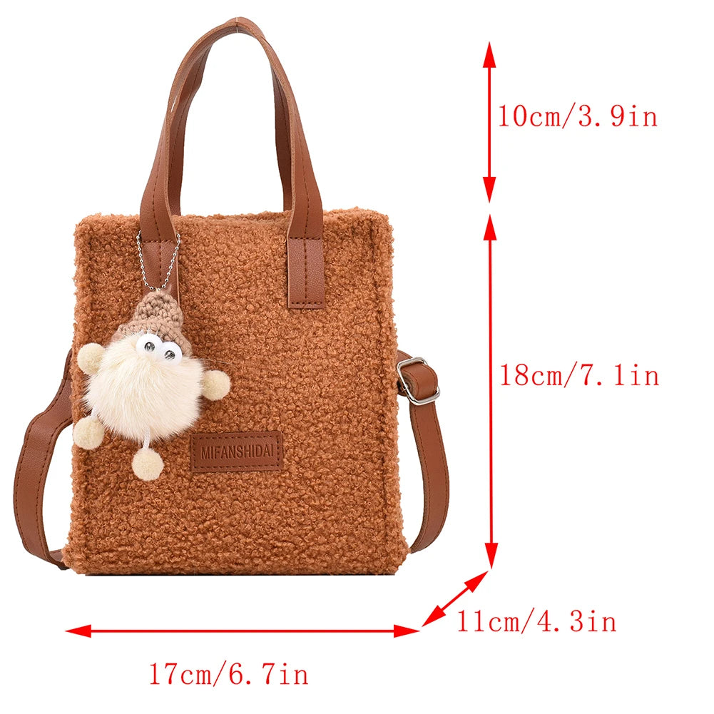 Faux Fur Crossbody Bag with Pendant for Winter