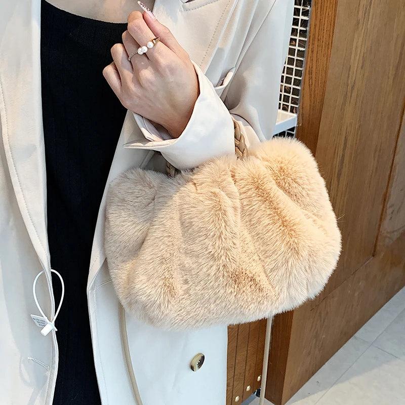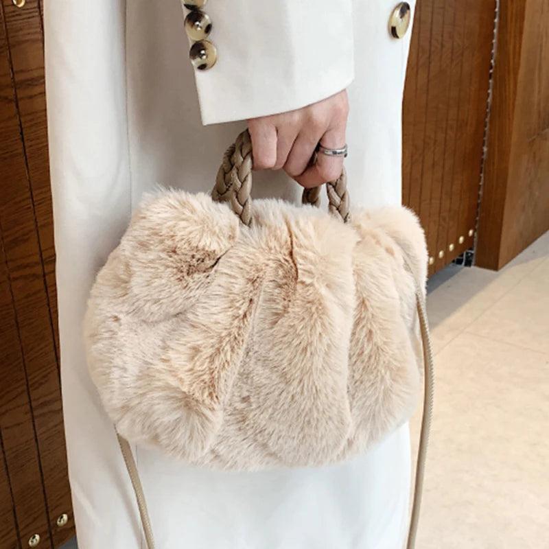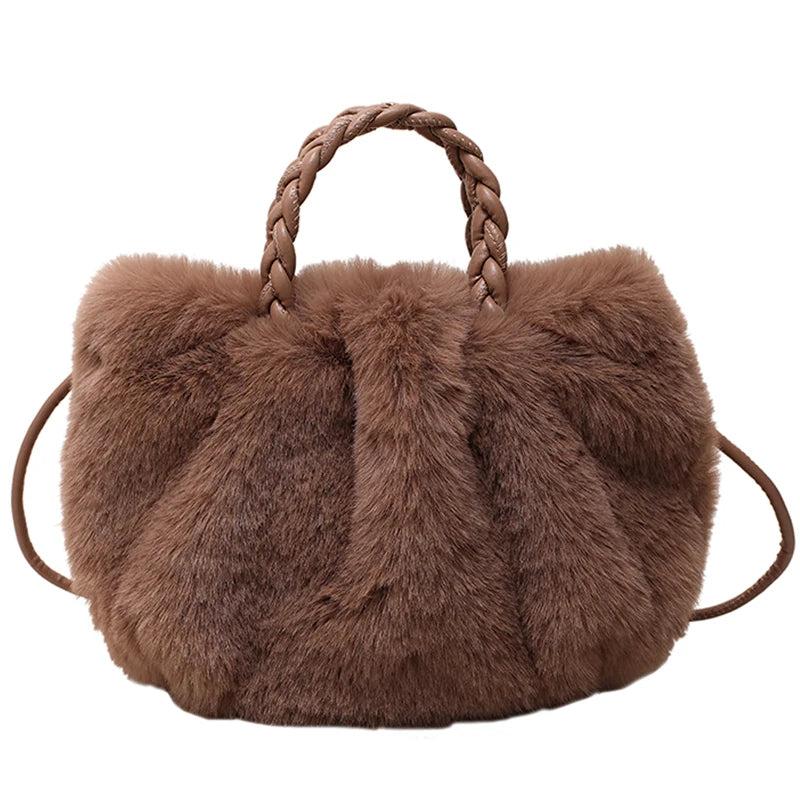 Faux Fur Tote Bag for Women - Winter Shoulder Side Handle Shopper