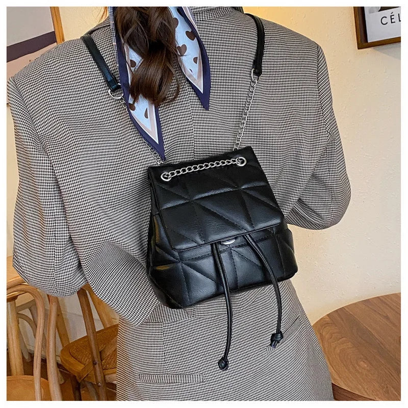 Female Backpack PU Leather Women Backpack Travel School Bag Chain Thread
