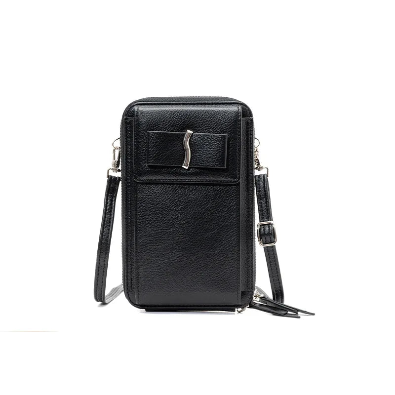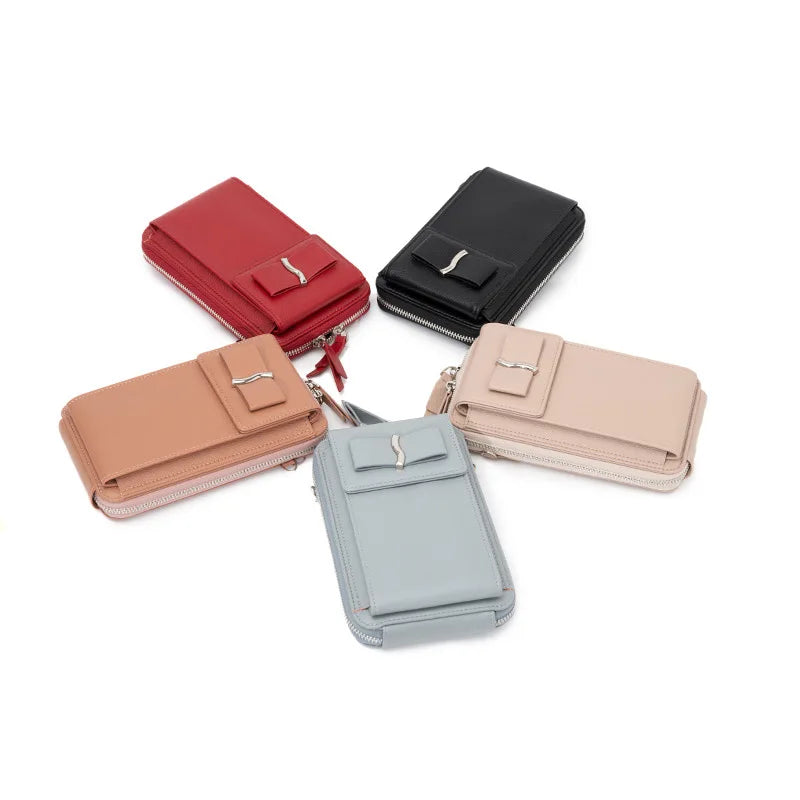 This women's messenger bag features a bowknot design, large capacity, and solid color. It can be used as a single shoulder purse or wallet.