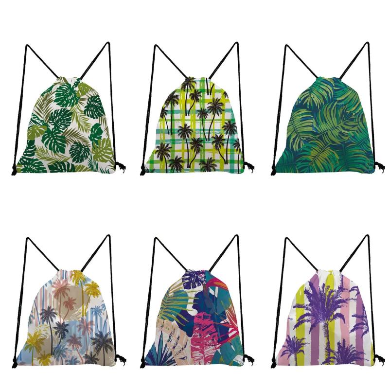 Flamingo Coconut Tree Backpack Eco Shopper Travel Fruit Pouch