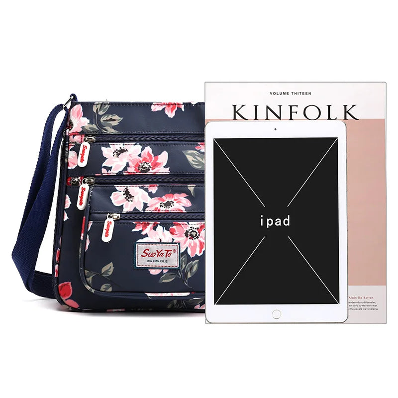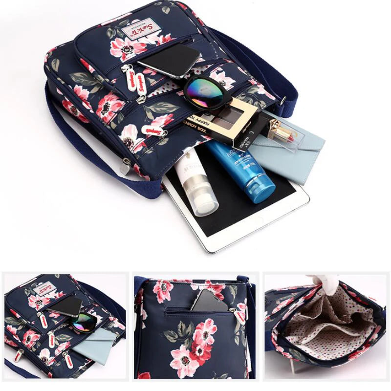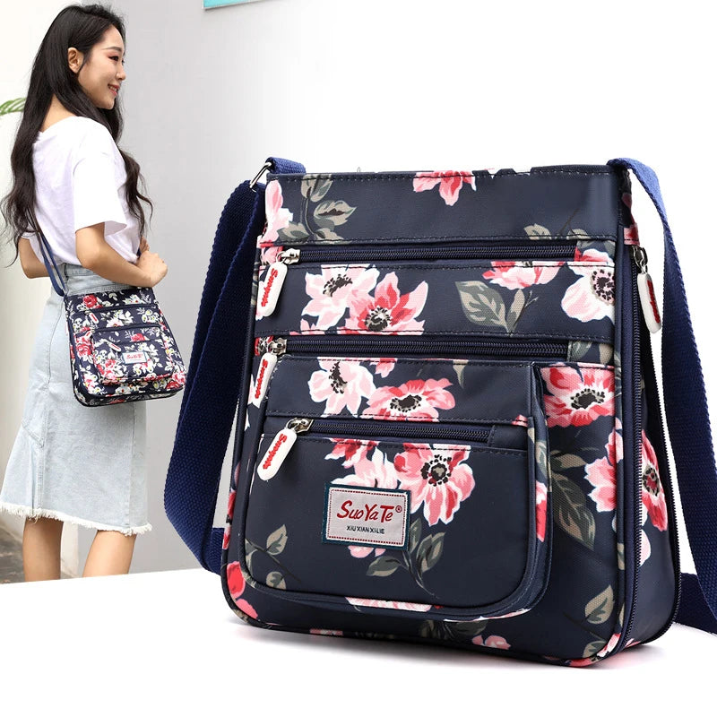 Stay stylish and secure with this anti-theft nylon messenger bag designed for women. The multi-layer design ensures ample storage space while the floral pattern adds a touch of elegance.