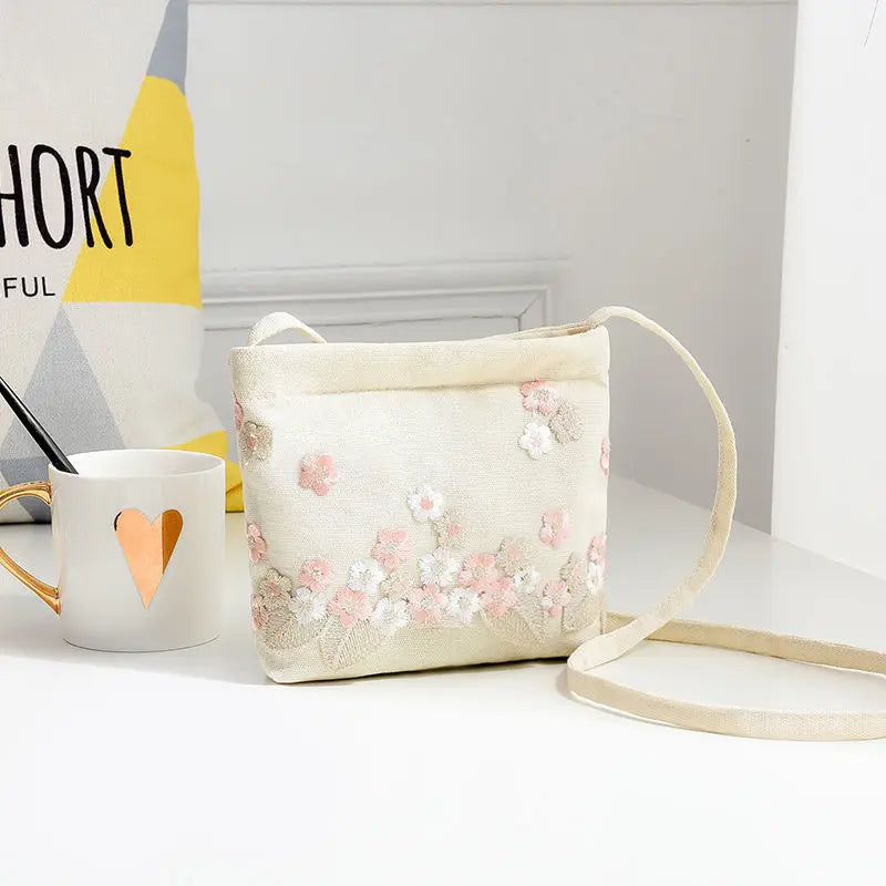Flower Embroidery Mini Canvas Crossbody Bag Colorful Students Purses