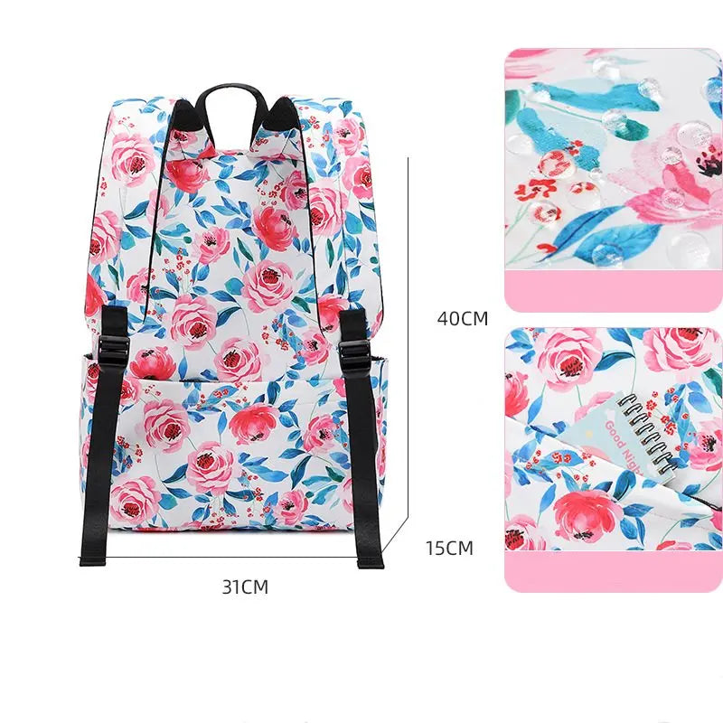 This women's school bag features a beautiful flower print design, is lightweight and anti-theft. It's high quality and great as a gift.