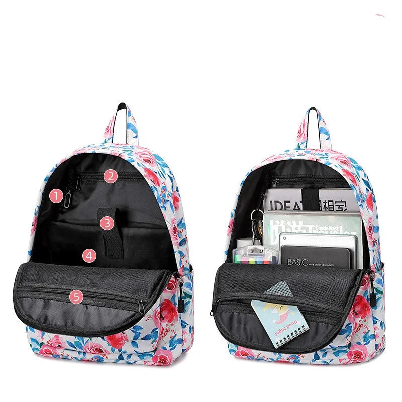 Flower Print Backpack Lightweight Anti-theft Computer Backpack