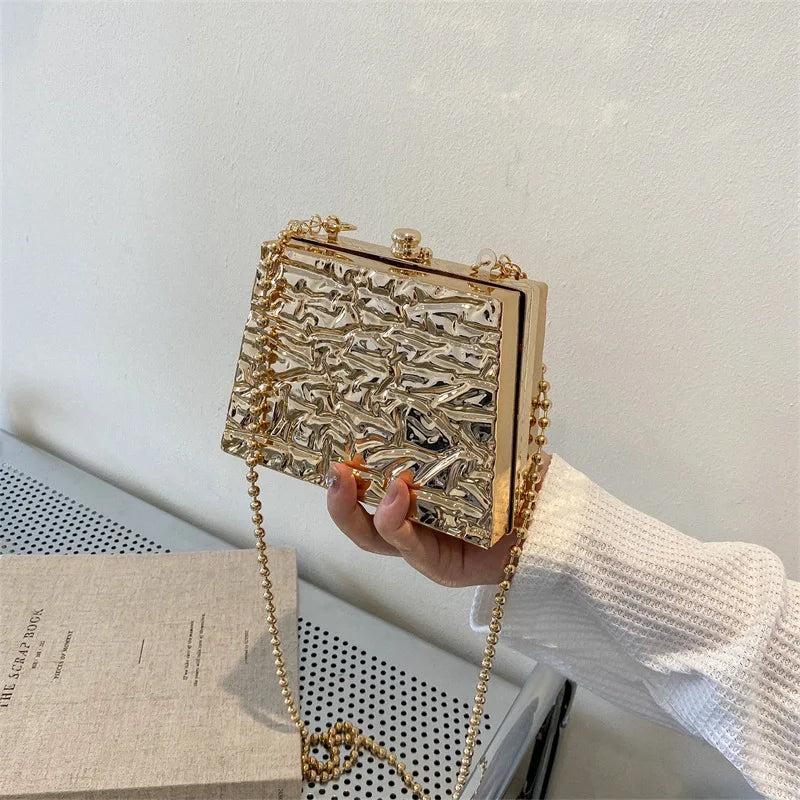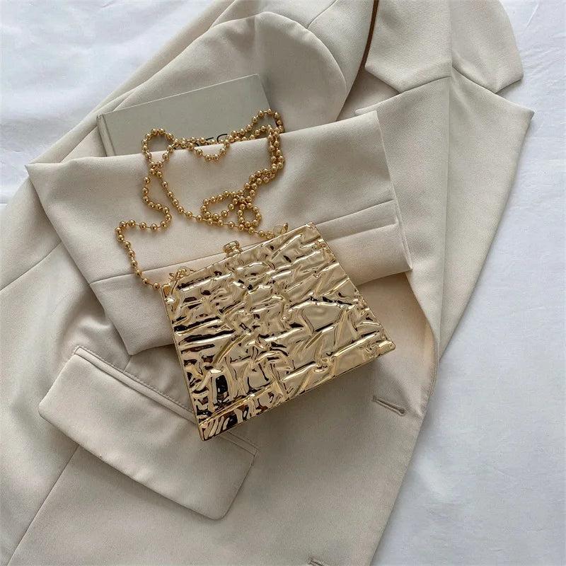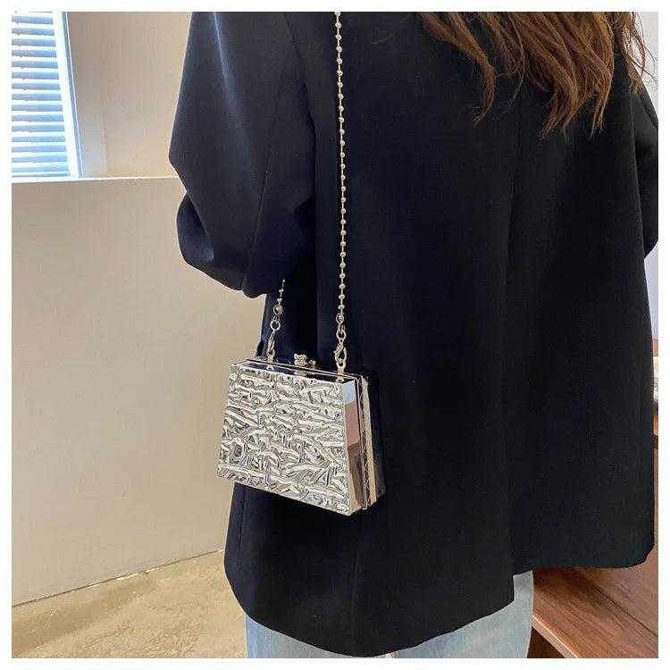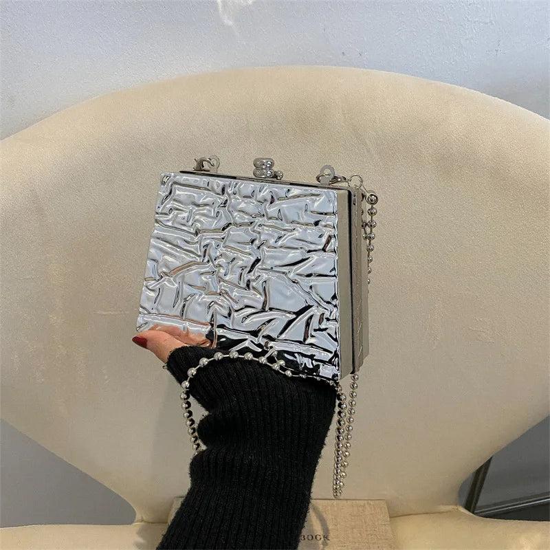 Elevate your style with these chic shoulder bags perfect for dinner parties. Features unique tin foil print designs and tropezoid shape. Ideal for adding a touch of glamour to any outfit.