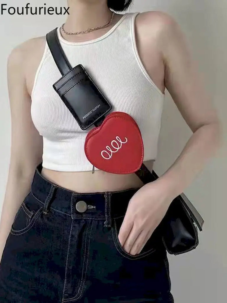 Foufurieux Korea Oblique Crossbody Bag Multi-purpose Shoulder Bag Heart Three-Pi