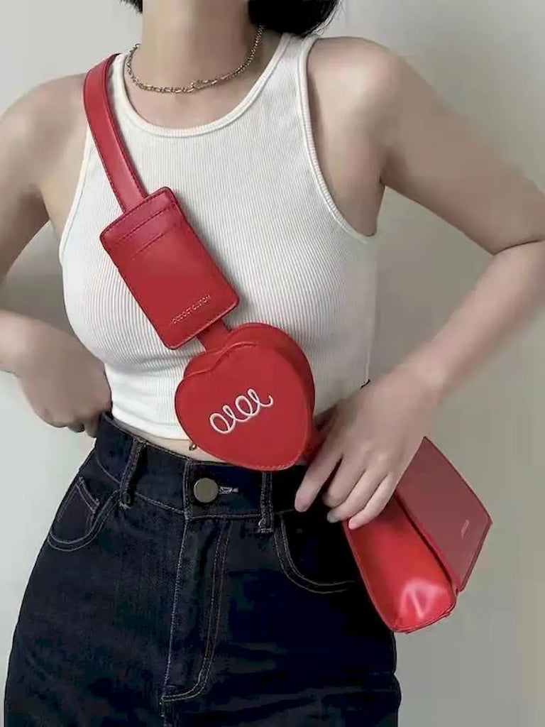 This stylish crossbody bag from Korea can be used as a shoulder bag. It features a heart design and comes in a set of three pieces.