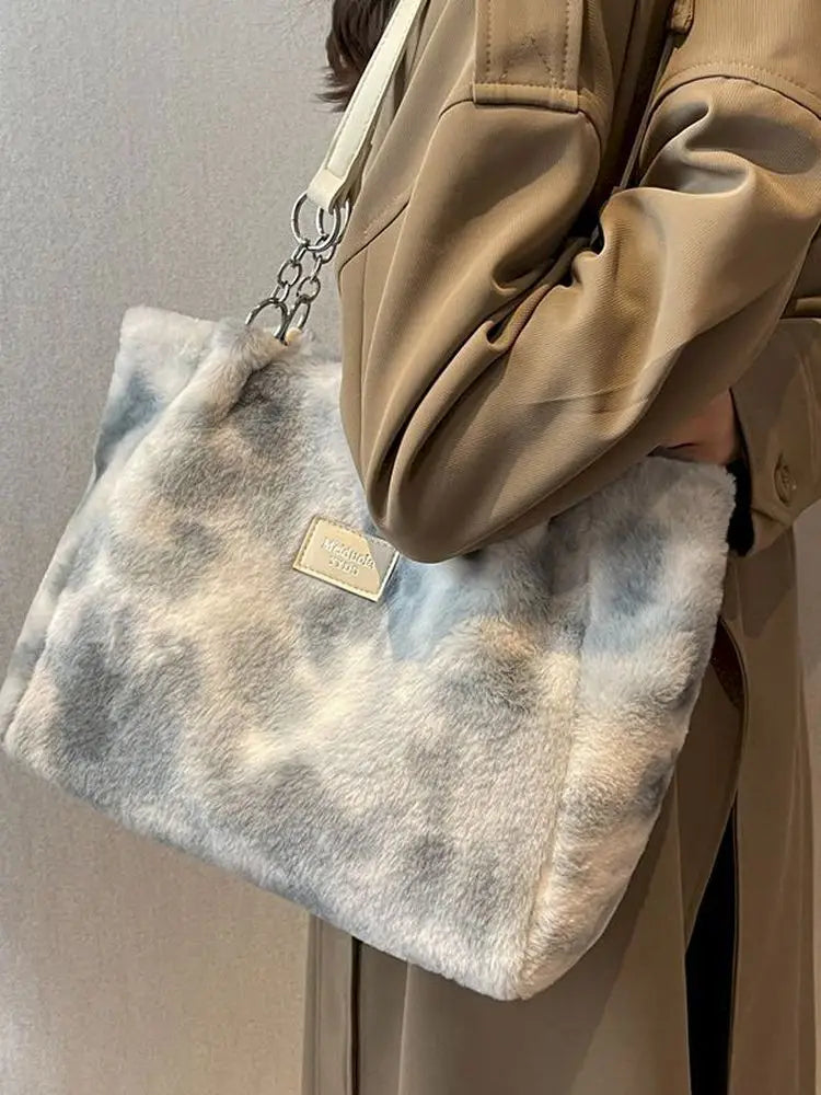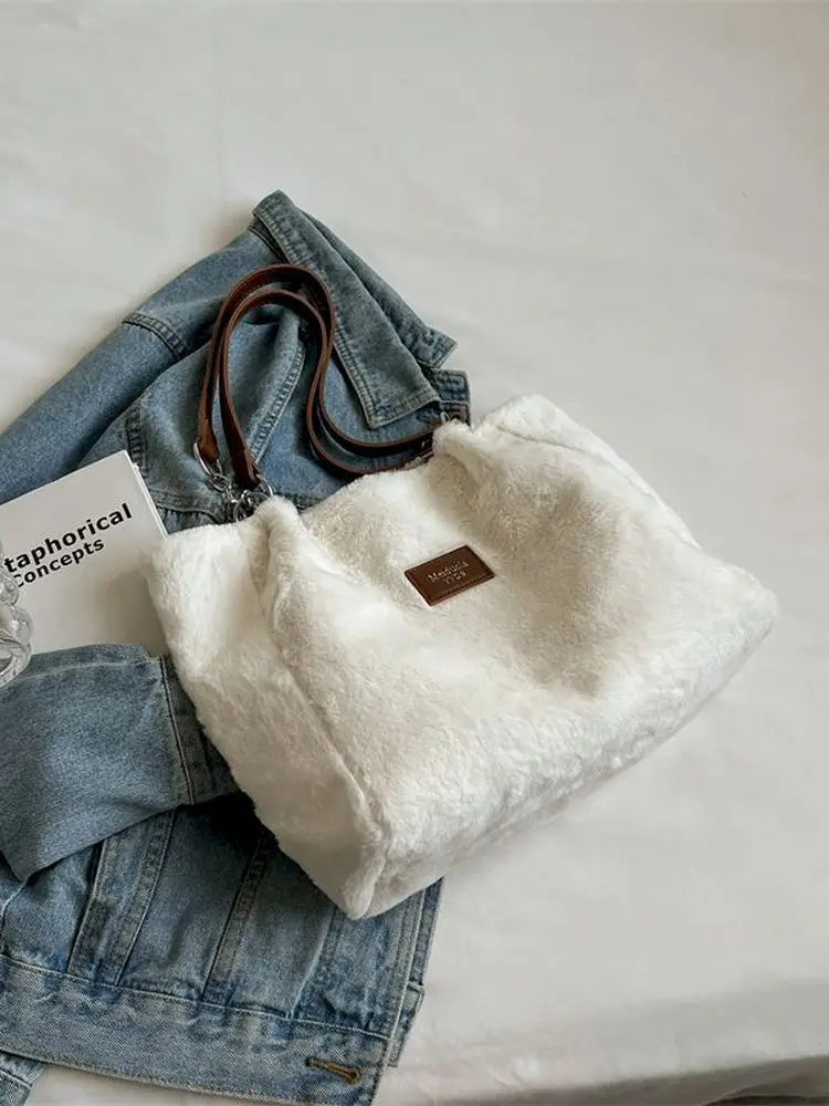 Foufurieux Large Tote Bag Women Faux Fur Big Shopper Winter Shoulder Side Bag