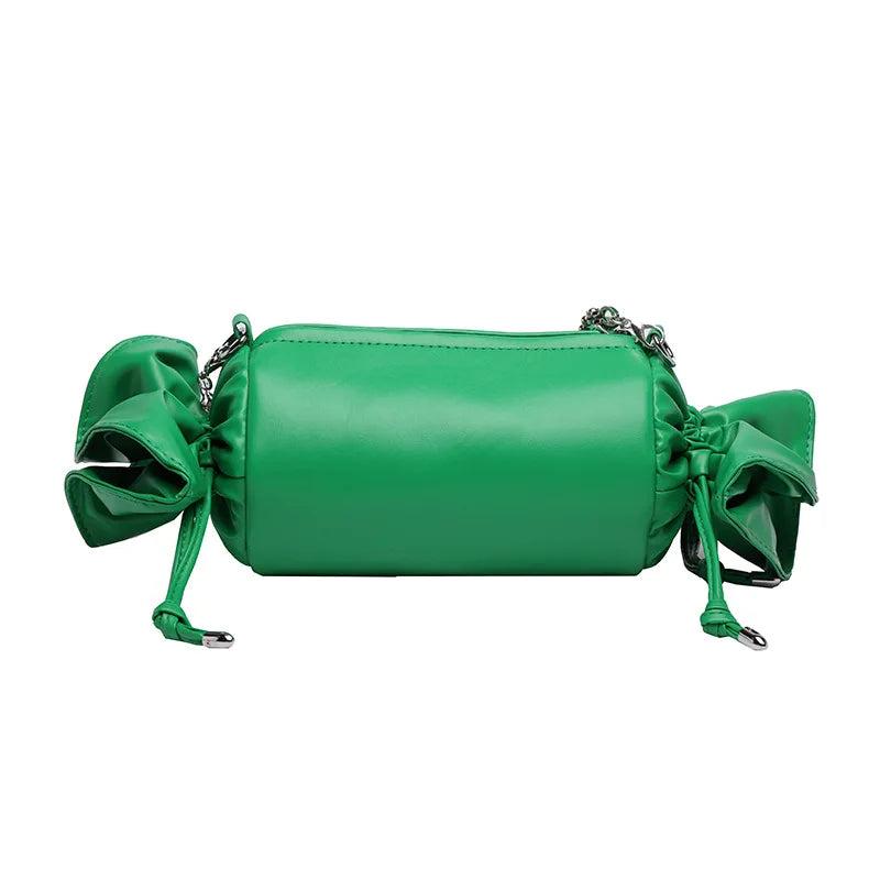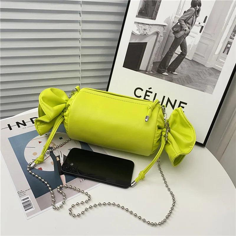Funny Candy Women Bag Leather Shoulder Bag Chain Pleated Barrel Messenger