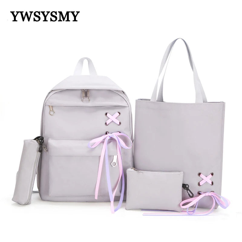 This 4-piece set includes a stylish canvas backpack for girls and women. Perfect for school or casual outings, this backpack offers ample storage and comfort.
