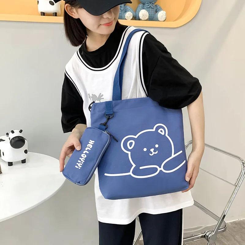 Girls Canvas Bear Print Shoulder Bag for Teen