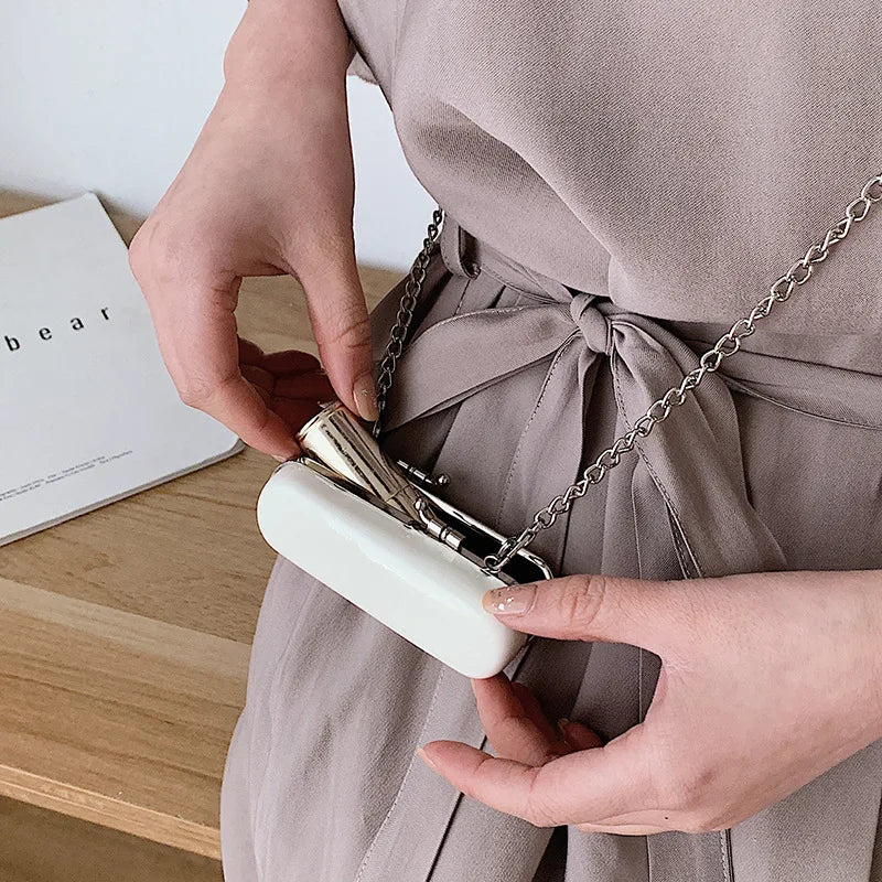 Stay stylish with this cute and casual personalized lipstick bag. It features a mini chain messenger design that's perfect for women on the go.