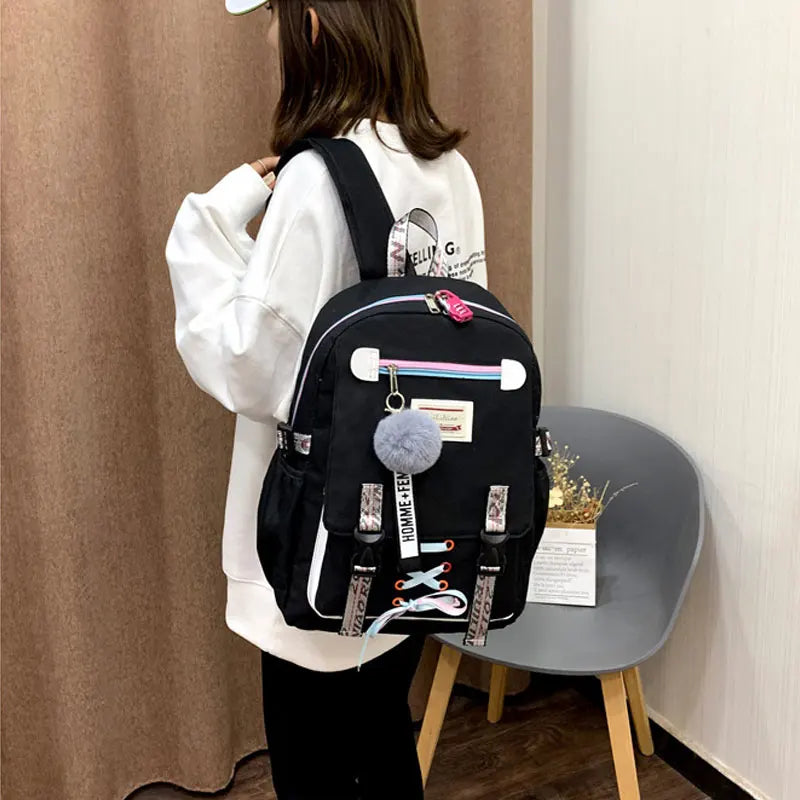 Description:This casual school bag is perfect for girls and women, equipped with a USB charging port for convenience. It can be used as a schoolbag or everyday backpack.Features: Adjustable straps for a comfortable fit Spacious main compartment with multiple pockets Stylish design suitable for school or casual use Durable construction...