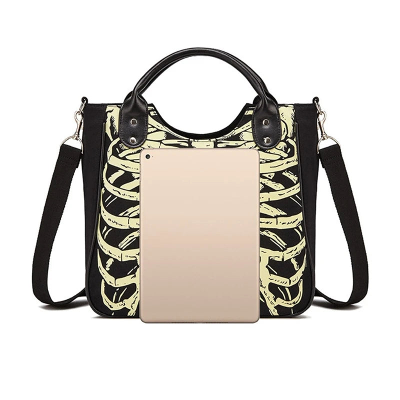 Description:Get into the Halloween spirit with this edgy shoulder bag featuring luminous gothic skeleton bones and skulls. Perfect for adding a punk touch to your outfit.Features: Luminous gothic skeleton bones and skulls design Ideal accessory for Halloween or punk-themed outfits Spacious shoulder bag for carrying your essentials Adjustable shoulder strap...