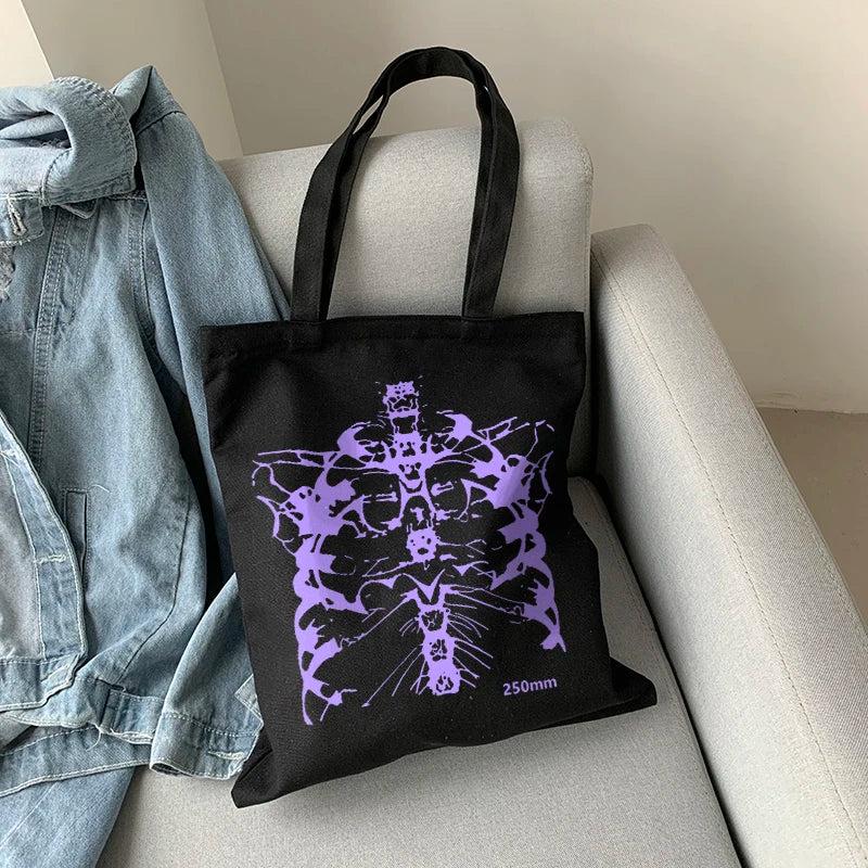 Gothic skull print canvas bag Skeleton y2k shopper bags Harajuku casual dark