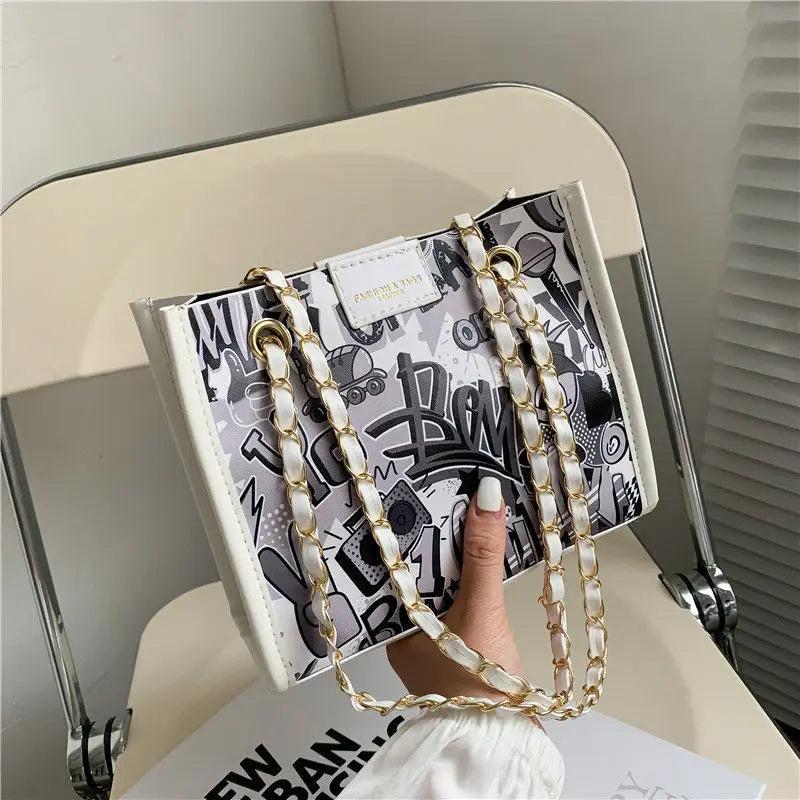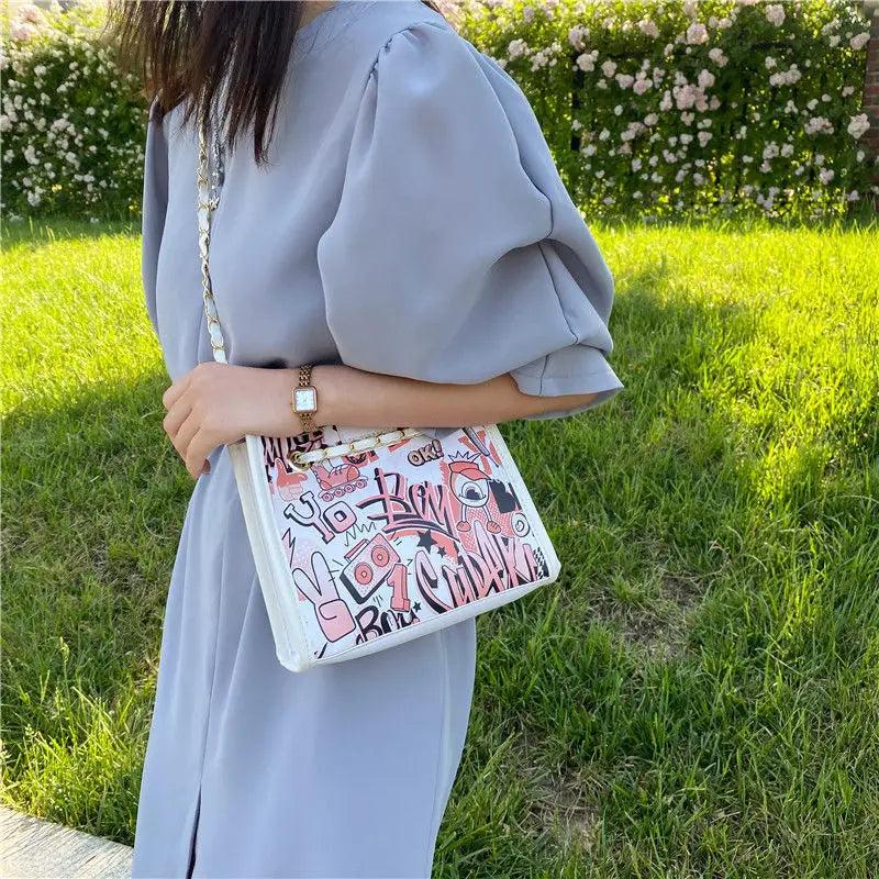 Graffiti Chain Messenger Bag Women's Shoulder Bag All-Match Small Square Bag