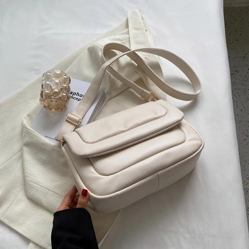 Stay stylish and warm with this green quilted shoulder bag for women. The down feather padding and space cotton lining provide extra insulation for the winter season.