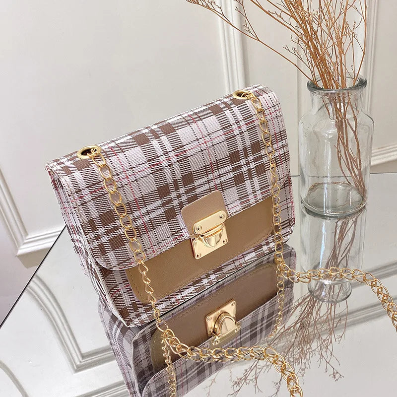 Grid Women Small Square Shoulder Bag Chain Mobile Phone Satchel