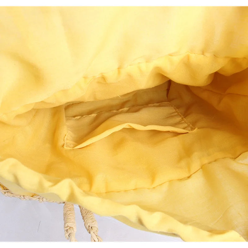 Hand-woven Wool Ball Straw Bag Beach Tote Shoulder Bag