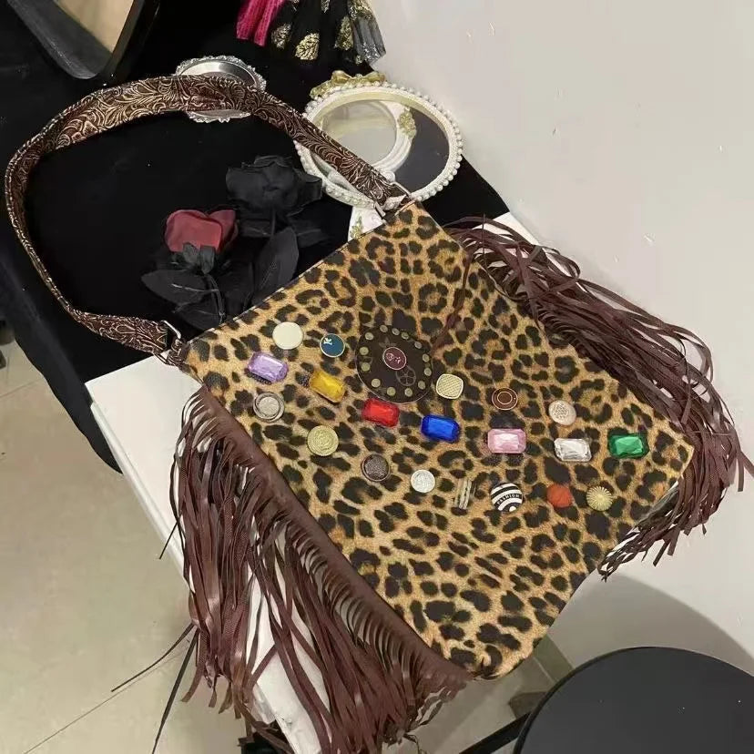 Harajuku Y2k Tassel Leopard Print Shoulder Bag