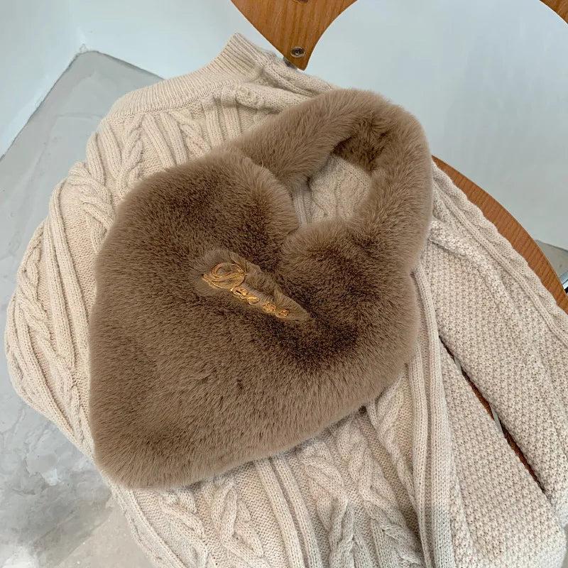 Elevate your style with this unique heart-shaped handbag made of soft plush faux fur. Perfect for parties or special occasions.