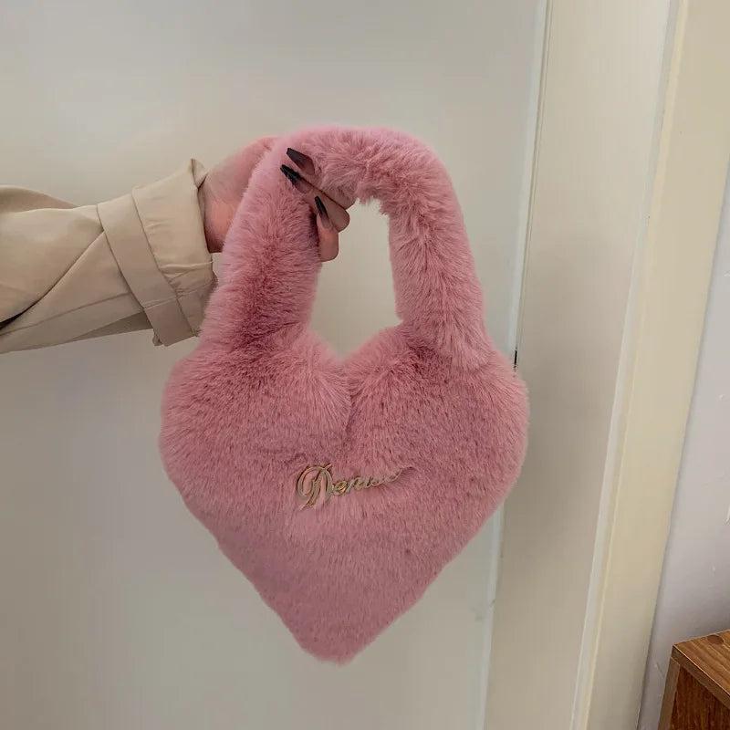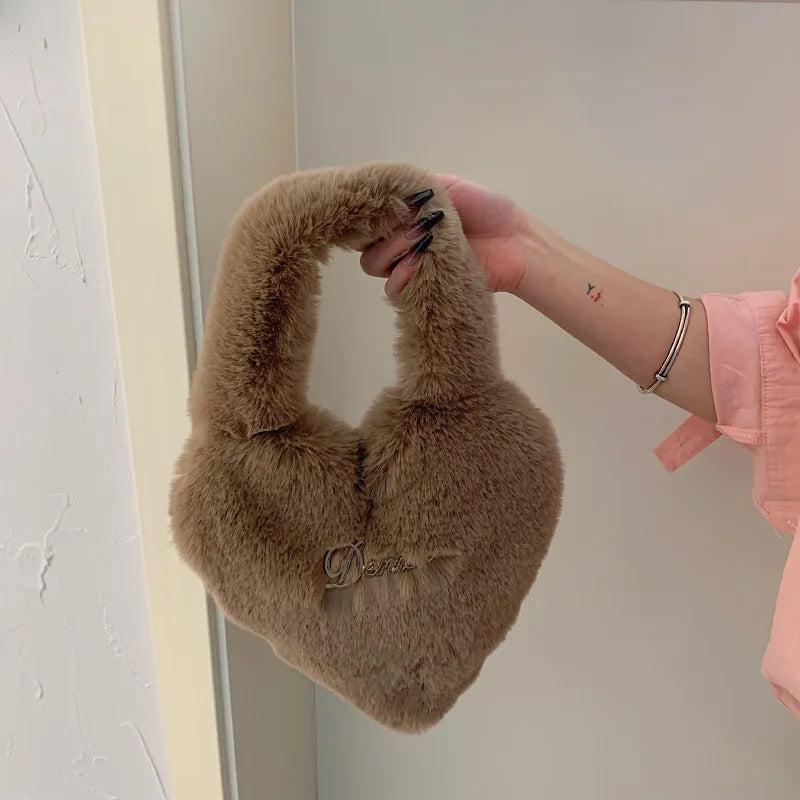 Heart Shape Women Soft Plush Hand Bag Faux Fur Tote Bags