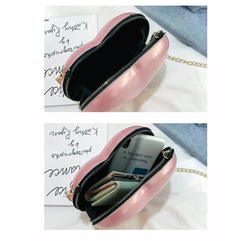 Stay trendy and stylish with this heart-shaped crossbody bag, perfect for everyday use. Features a secure zipper closure.